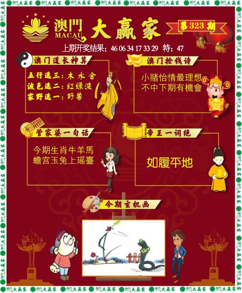 力 五是吉数有玄机,小巧玲珑妙术奇;三餐依然多享泰,红色梅花三六九。 | 06 | 鼠 | 绿 | ||||||